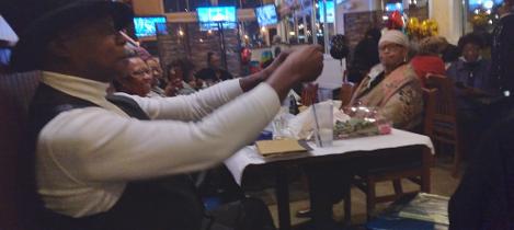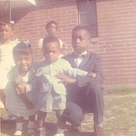 TC at the Iron Hll Church as a child. He brought his drum sticks to play along. He came with Louise Woodlen and her tambourine. Bishop Thompson and his wife Nanny (the worship leader) can be seen on his right and Mr. Miller playing guitar.