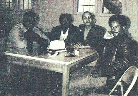 This is a picture of her brothers and sisters and family's members in their younger days together.