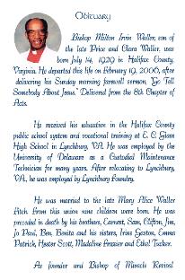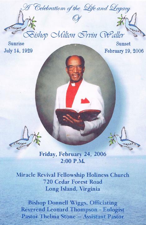 Pastor Miller came up from Cluster Pines Holiness Church in Gretna, Virginia to attend Pastor Thompson's 55th anniversary at Iron Hill Church.