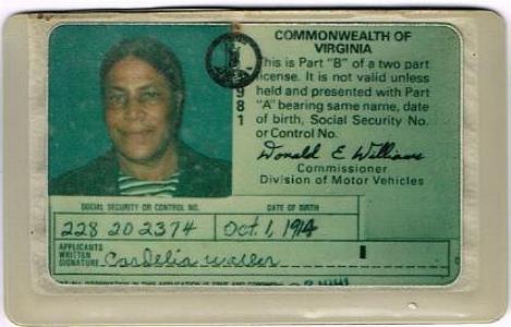 Christine Word's Virginia Diver's License. She is ninety-three (93) she is still holding service in the building all this time.