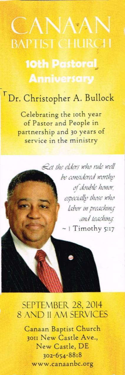 Reverend Bullock just earlier mentioned that he and Reverend Daniels were going to fly up to Teen Challenge in a helicopter to start a drug program there. Under Bullock's leadership and Reverend Ty from CTAC along with Reverend Daniels and Earl saved over one hundred (100) people in the Philadelphia area. I would like to thank all of them for their good work in Delaware as well.